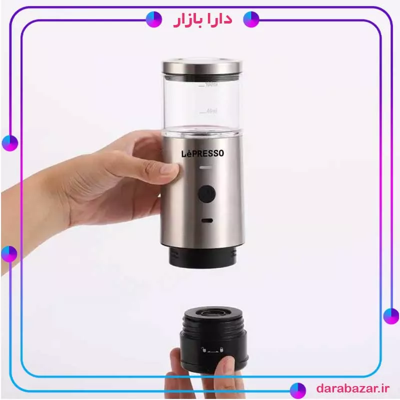 قهوهساز شارژی استیل مدل LPSTPEM لپرسو LePresso Stainless Steel Portable Espresso Maker LPSTPEM محصولی مدرن و قابلحمل است که تجربه یک اسپرسوی حرفهای را در هر مکان برای شما فراهم میکند. طراحی جمعوجور، بدنه استیل ضدزنگ و عملکرد هوشمند با فشار 9 بار، این دستگاه را به انتخابی بیرقیب برای عاشقان قهوه در سفر، محل کار یا طبیعت تبدیل کرده است.